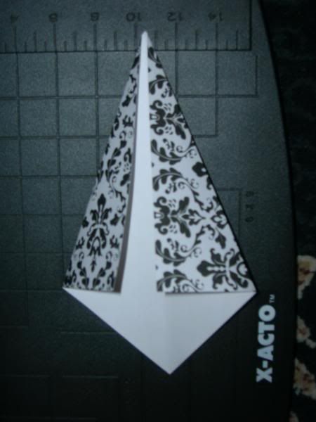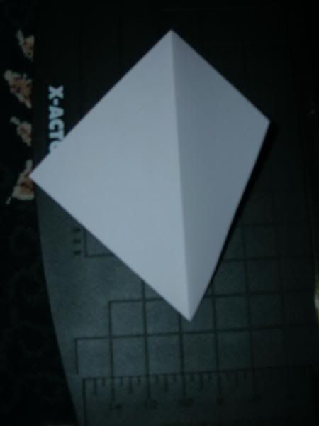 6. Then unfold the paper and fold each side out from the center fold line creating a triangle shape on each side.