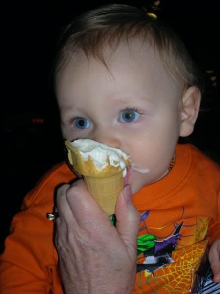 He also had his first taste of ice cream. Now I know that my parents would not have given ME ice cream at 9 months, but they sure thought it was funny to watch Nico eat it. And I guess it was. He dove right into it and wanted the cone and all.