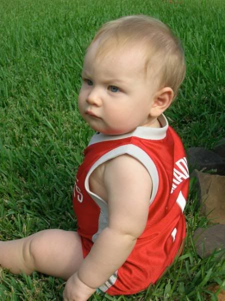 Check Nico out sporting his Rockets jersey. John says that he can be a Rockets fan since there's no longer a basketball team in Seattle. But that's kind of a touchy subject.